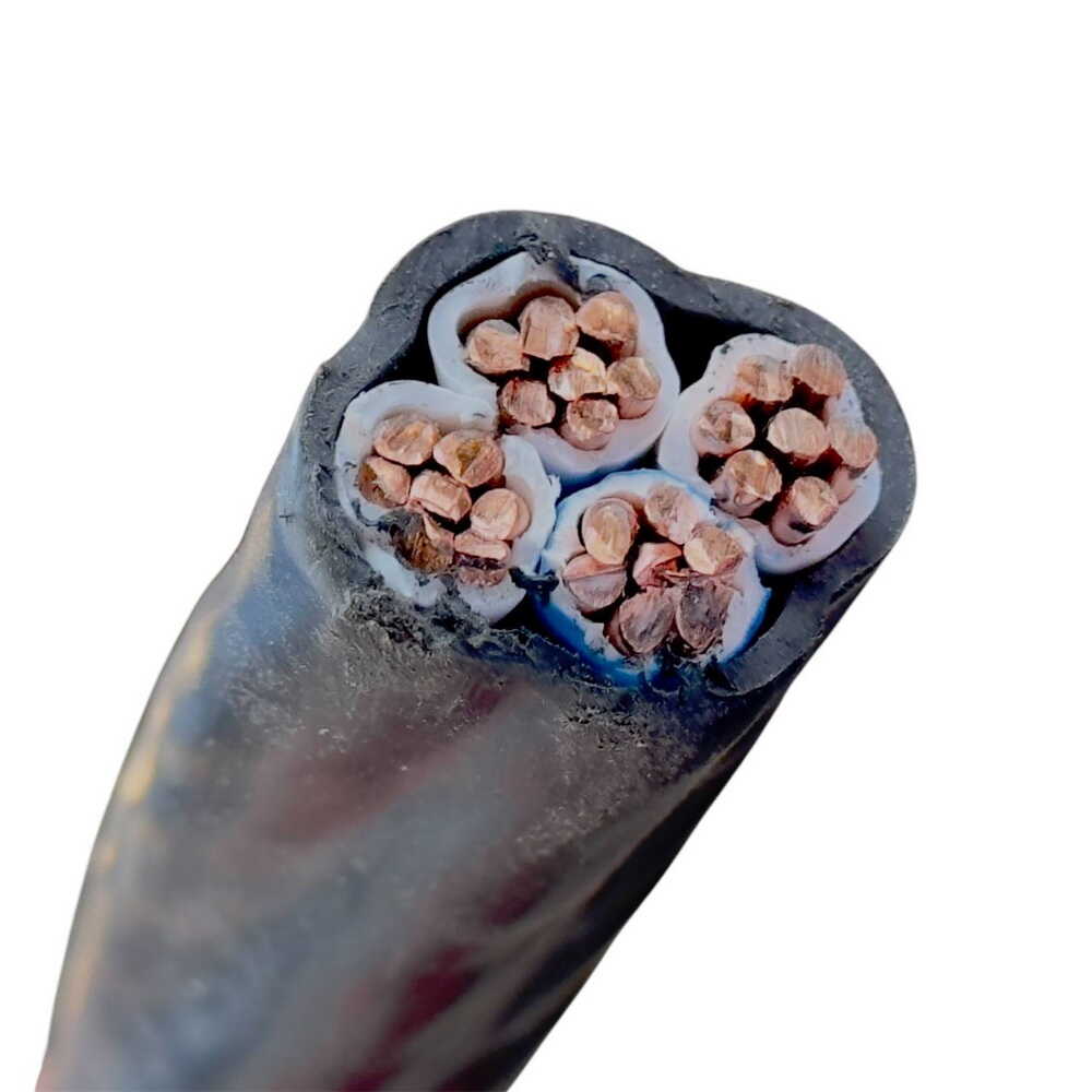 - Токопроводящая медная жила, однопроволочная круглая (ок), 1 или 2 класса гибкости. У четырехжильных кабелей жилы с сечением 70–240 мм2 могут быть секторной формы (мс);