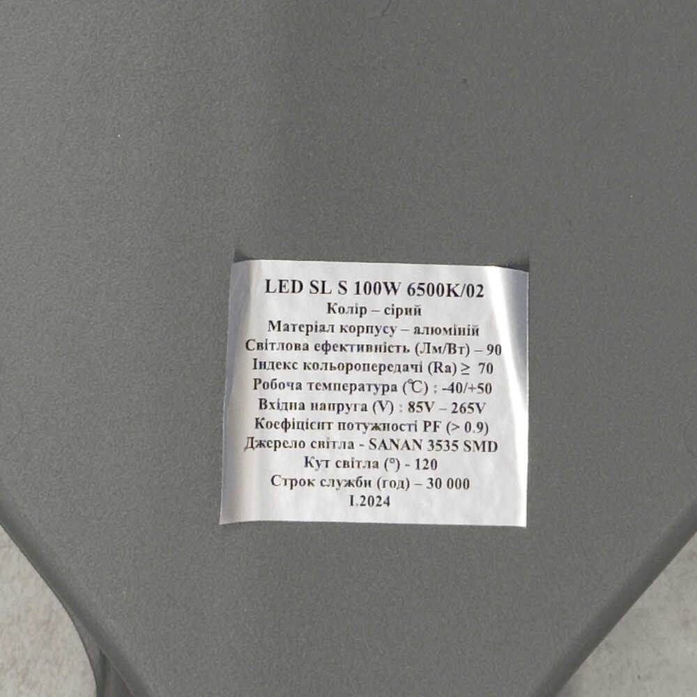 Светильник LED уличный ISKRA 100W 6500K IP65 ( SL 100W-P6/02-90 ) основные характеристики: